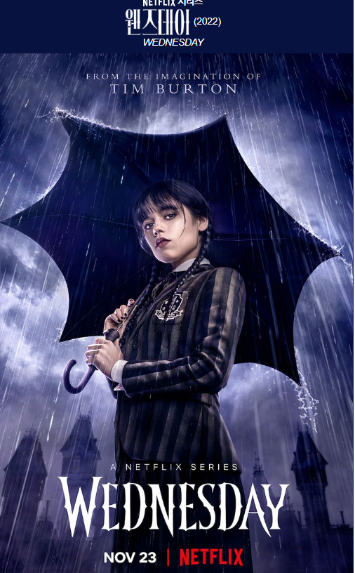 비오는날 .. 우중충한날 ... 딱 보기 좋은 영화 넷플릭스 드라마 팀버튼 감독 웬즈데이 추천 한다.