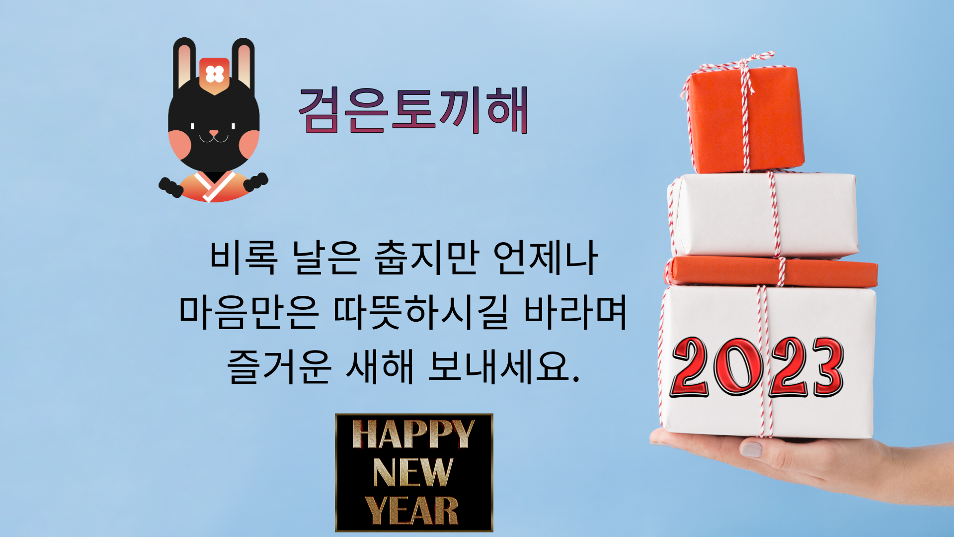 | 2023 기묘년 토끼해 새해인사 미리캠퍼스에서 신년연하장 만들기 (0) | 2022.12.30 |