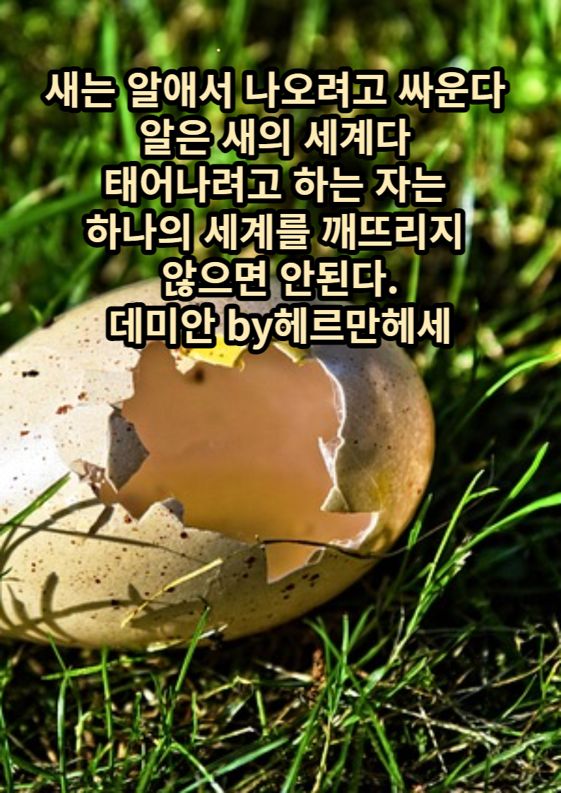 태어나는 것은 언제나 어려운 일이지요. 새도 알을 깨고 나오려면 온힘을 다해야 한다는 걸 당신도 잘 알잖아요. 돌이켜 자신에게 한번 물어보세요. 대체 그 길은 그렇게도 어려웠던가? 그저 어렵기만 했던가? 그러나 역시 아름답지는 않았는가? 하고 말이에요. 당신은 보다 더 아름답고도 쉬운 길을 알고 있나요?