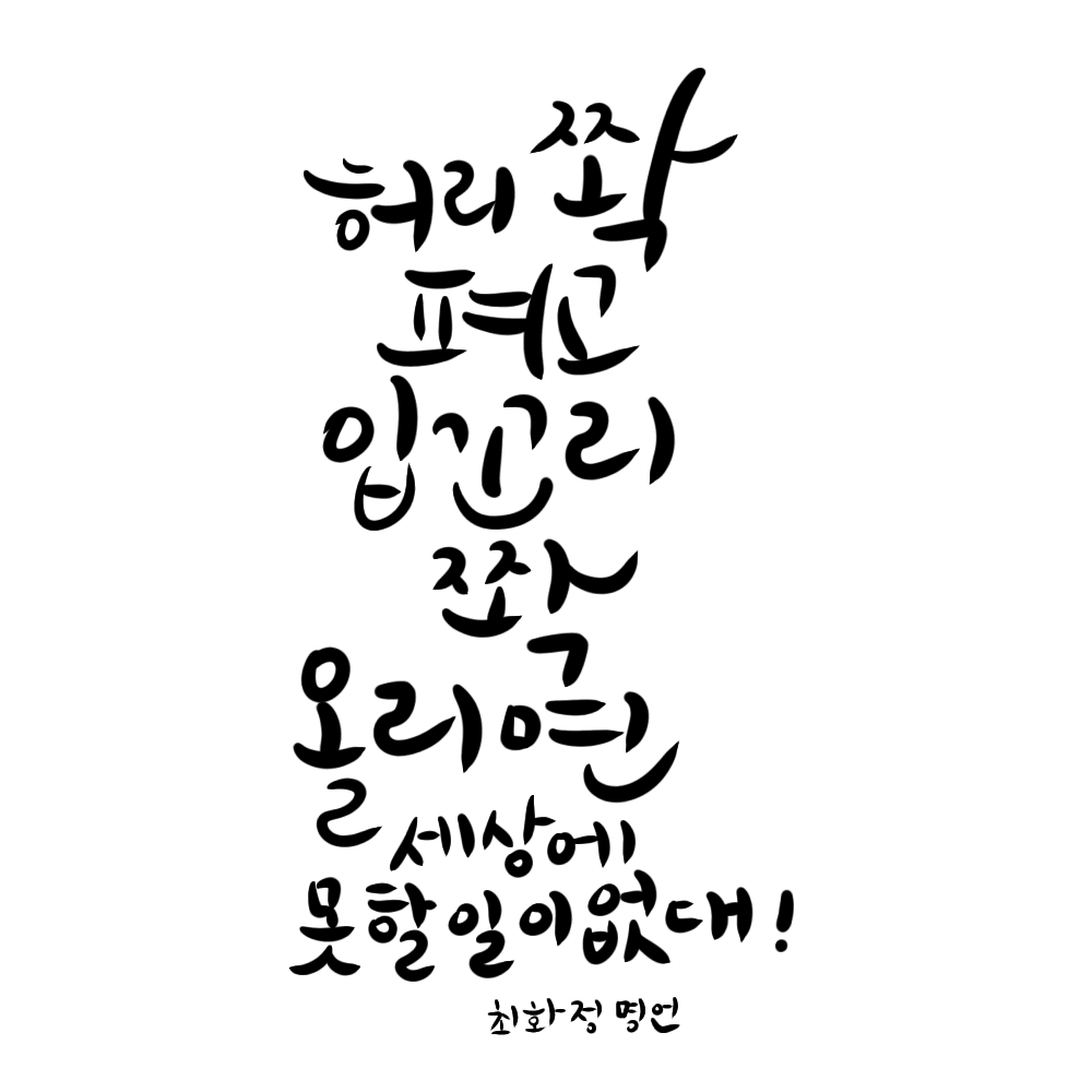 허리 쫙 피고 입꼬리를 쫙 올리면 세상에 못할 일이 없다."