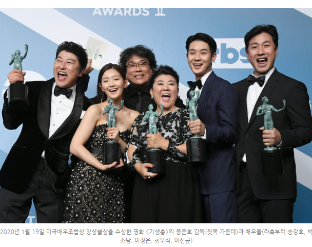 한편, 봉준호 감독의 영화 <기생충>이 2020년 1월 19일 미국배우조합상에서 앙상블상을 수상했다. 앙상블상은 영화에 출연한 주연·조연 배우 전체에 수여하는 것으로, 해당 시상식에서 가장 큰 영예로 여겨진다. 기생충은 비(非)영어 영화로는 1999년 <인생은 아름다워> 이후 21년 만에 배우조합상 앙상블상 후보가 된 데 이어, 최초 수상에까지 성공하는 성과를 이뤘다.