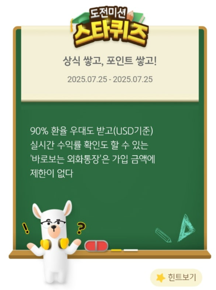 2025년 7월 25일 퀴즈 문제는 외화통장에 대한 질문이었습니다.