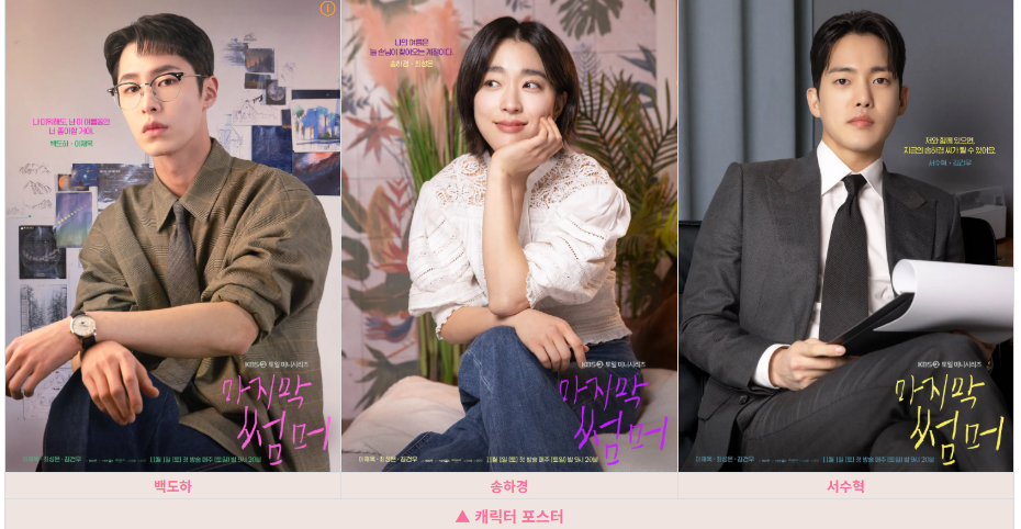 가을 감성이 물씬 묻어나는 **KBS2 토일드라마 ‘마지막 썸머’**가 11월 1일 첫 방송을 시작했습니다.