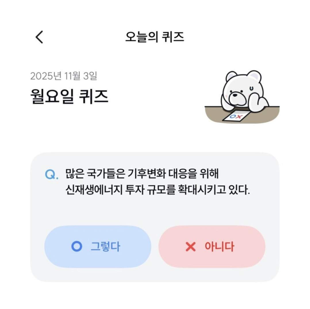 #기후동행퀴즈 #기후행동퀴즈 #11월3일퀴즈 #신재생에너지 #탄소중립 #환경실천 #지구를위한작은실천