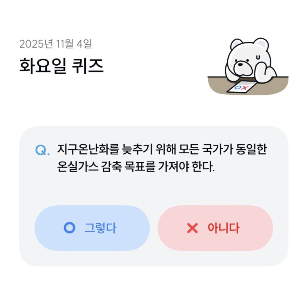 🧸 11월 4일 기후동행퀴즈 정답 🌍 오늘의 기후행동퀴즈