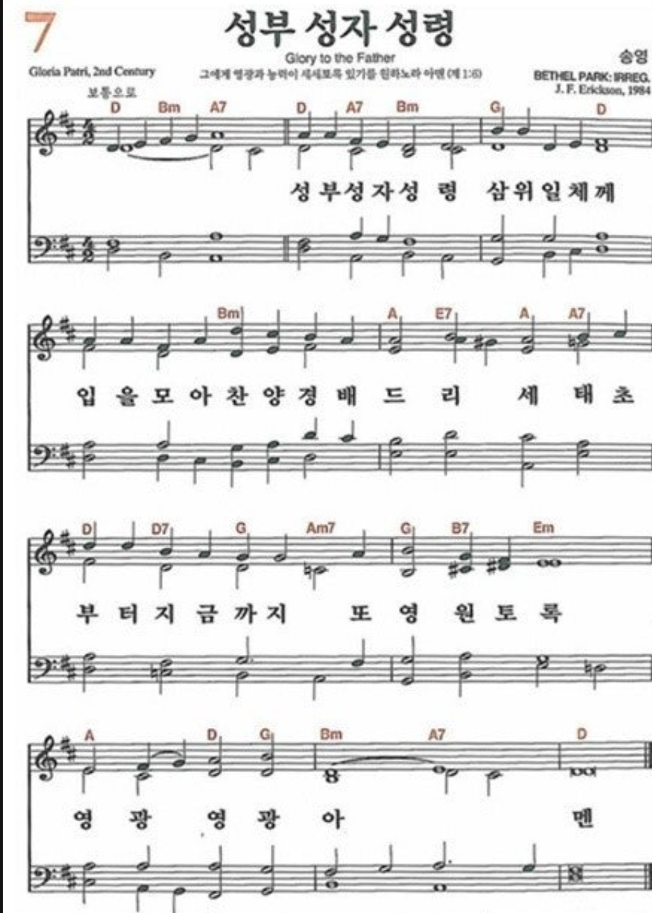 찬송가 7장은 고대 교회의 신앙 고백인 Gloria Patri를