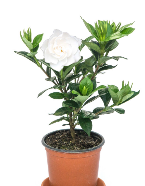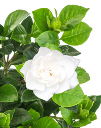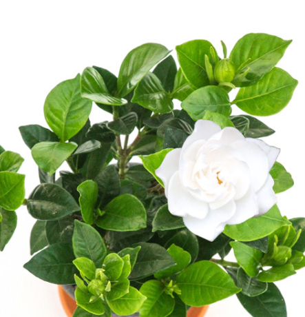 광택나는 두꺼운 잎이 특징이며 한나무에 꽃대가 많이 맺히는 치자 나무 하얀꽃이 겹꽃으로 예쁘게 핀다.