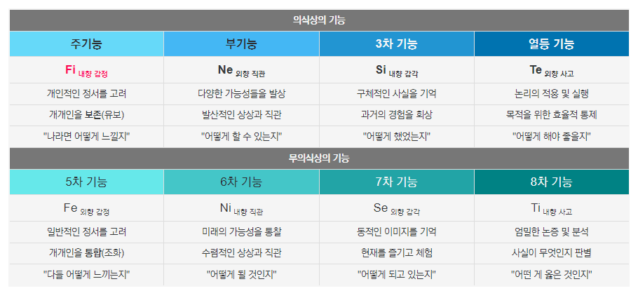 예를 들어 그들의 내향감정형은 주관적이지만 엄연히 합리적인(J) 유형으로써 내향(IN) 감정(FJ)형, 즉 MBTI 의 INFJ 유형에 더 가깝다는 것이다.