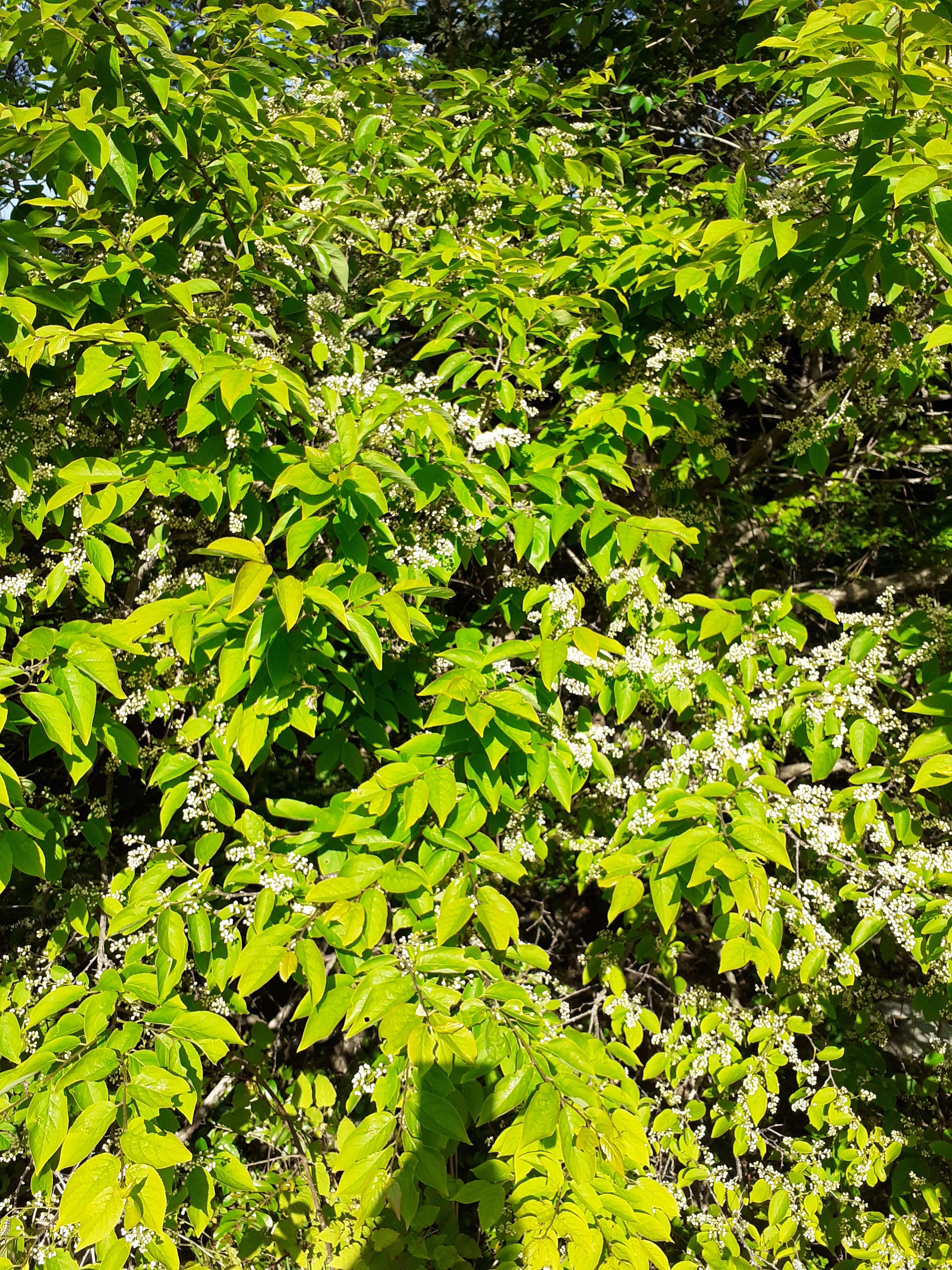 원뿔모양꽃차례는 길이 4~8cm로 새가지 끝에 달리며, 꽃은 지름 8~10mm로 흰색이며 향기가 있고, 꽃잎은 긴 타원형으로 옆으로 퍼지며, 4월 말~6월 중순에 개화한다.