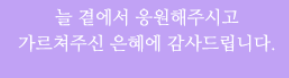 늘 곁에서 응원해주시고 가르쳐주신 은혜에 감사드립니다.