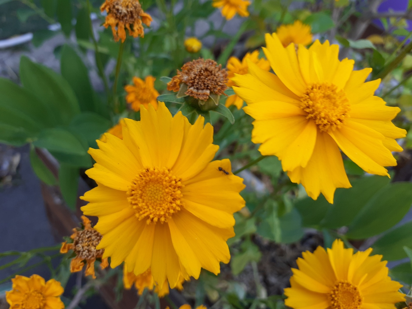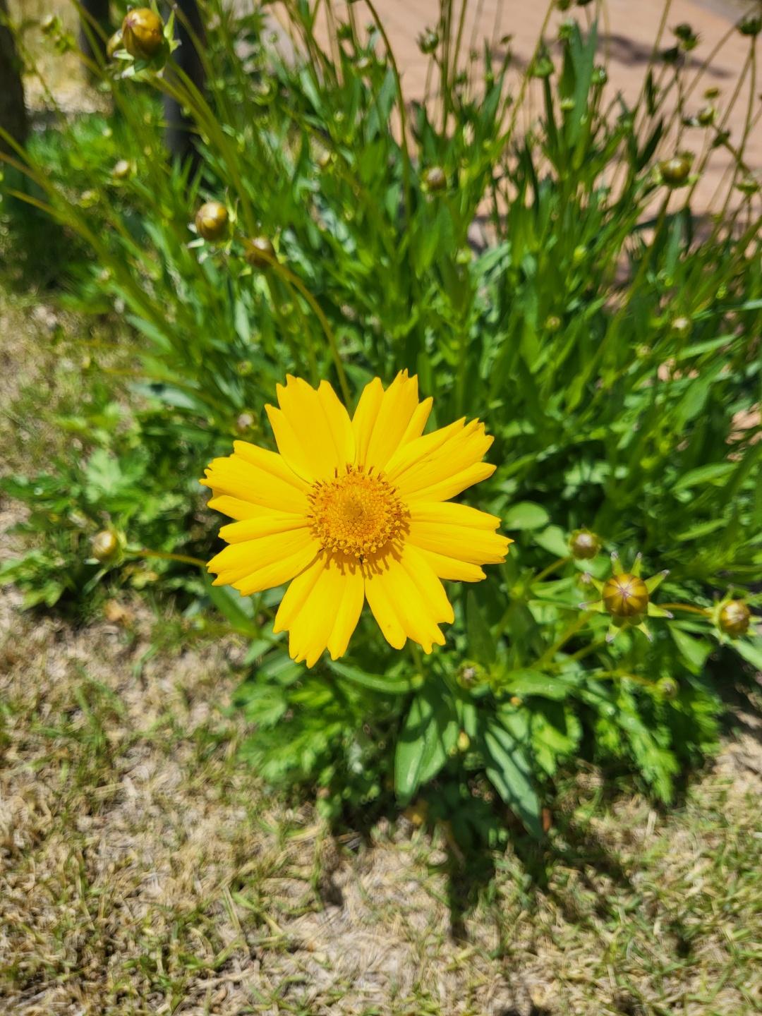 야생화는 어느 곳이든 흙이 있고 씨앗만 떨어져 준다면 아스팔트 위에도 뿌리를 내리고 꽃을 피워냅니다. 위대한 자연의 섭리를 발견합니다. 거친 야생에서도 살아남은 생명력으로 황금빛 꽃길을 만들어 준 금계국이 바람 따라 살랑거립니다.