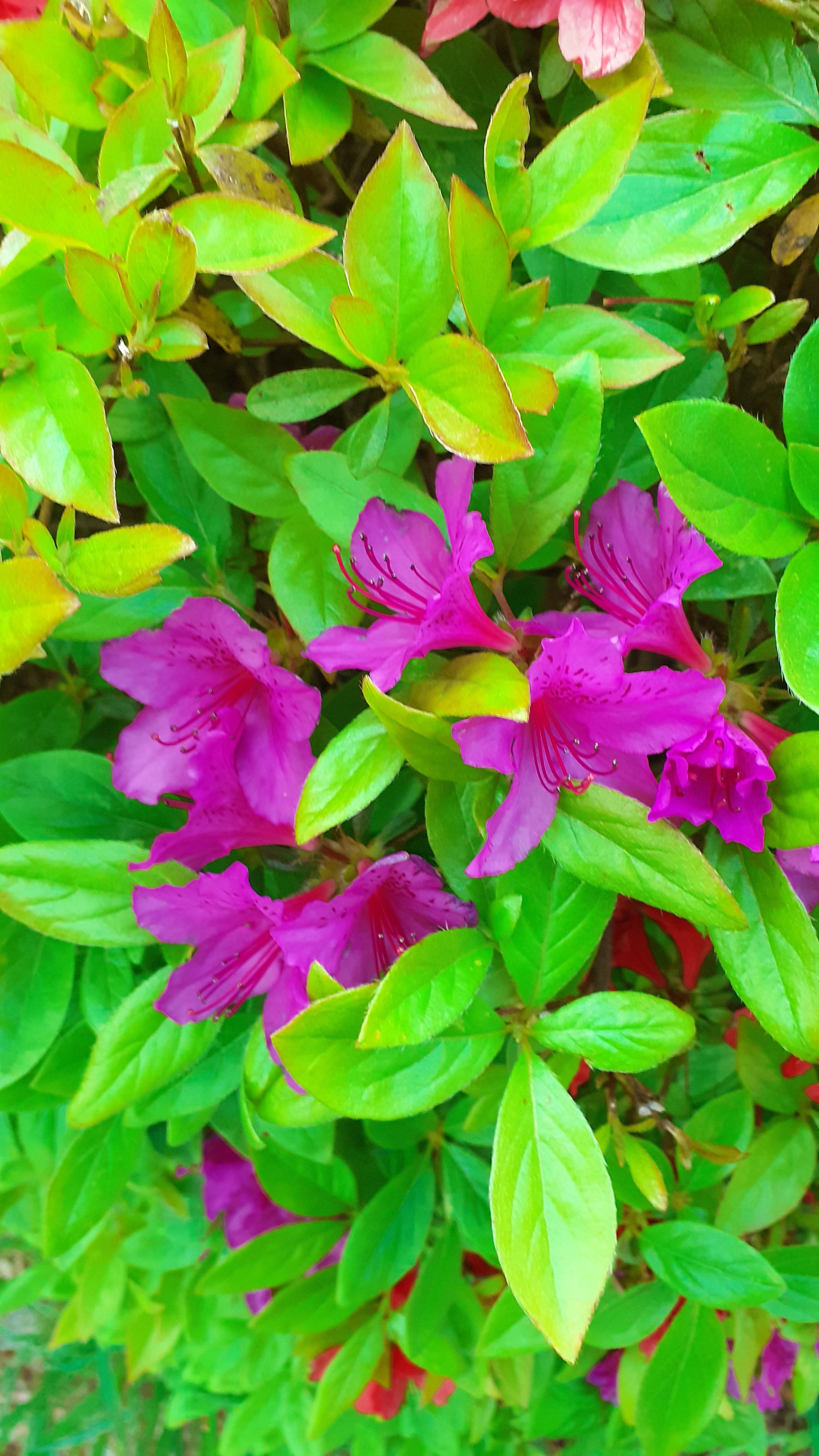 바로 연산홍이다. 요즘 거의 절정을 이루고 있는 꽃이다. 그화려함에 눈이 부셨던 기억이난다.다채로운 색으로 바뀌어가는 봄날 바깥세상은 그렇게 화려했을 수도 .....