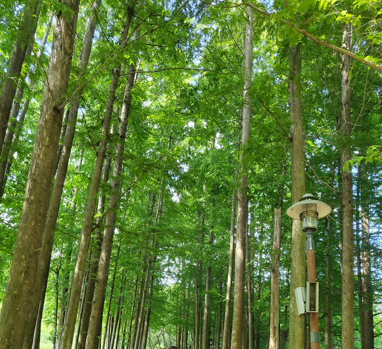 가로수 나무가 뜨거운 햇볕을 가려그늘을 만들어주고 호수에서 불어오는 바람이 나뭇결 따라 산들거리며
