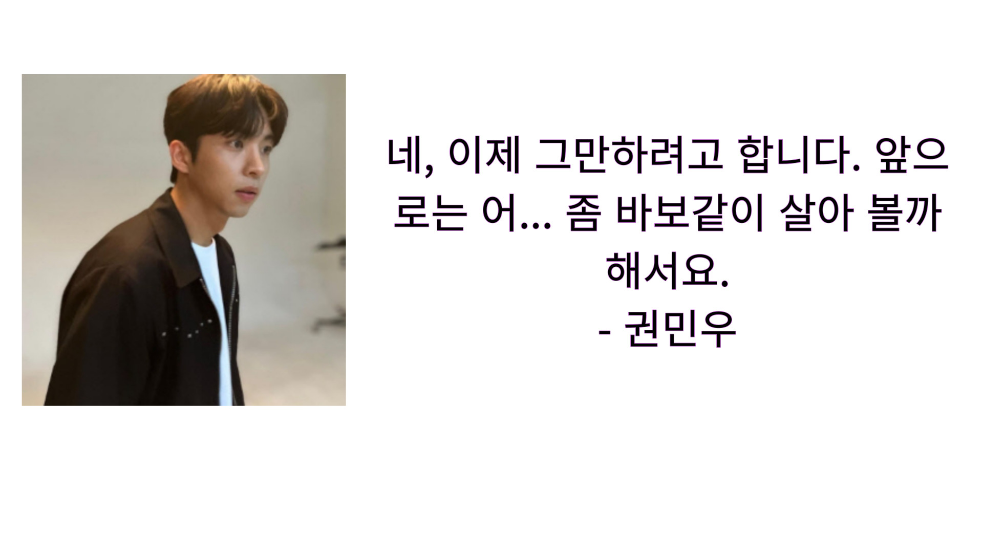 네, 이제 그만하려고 합니다. 앞으로는 어... 좀 바보같이 살아 볼까 해서요.