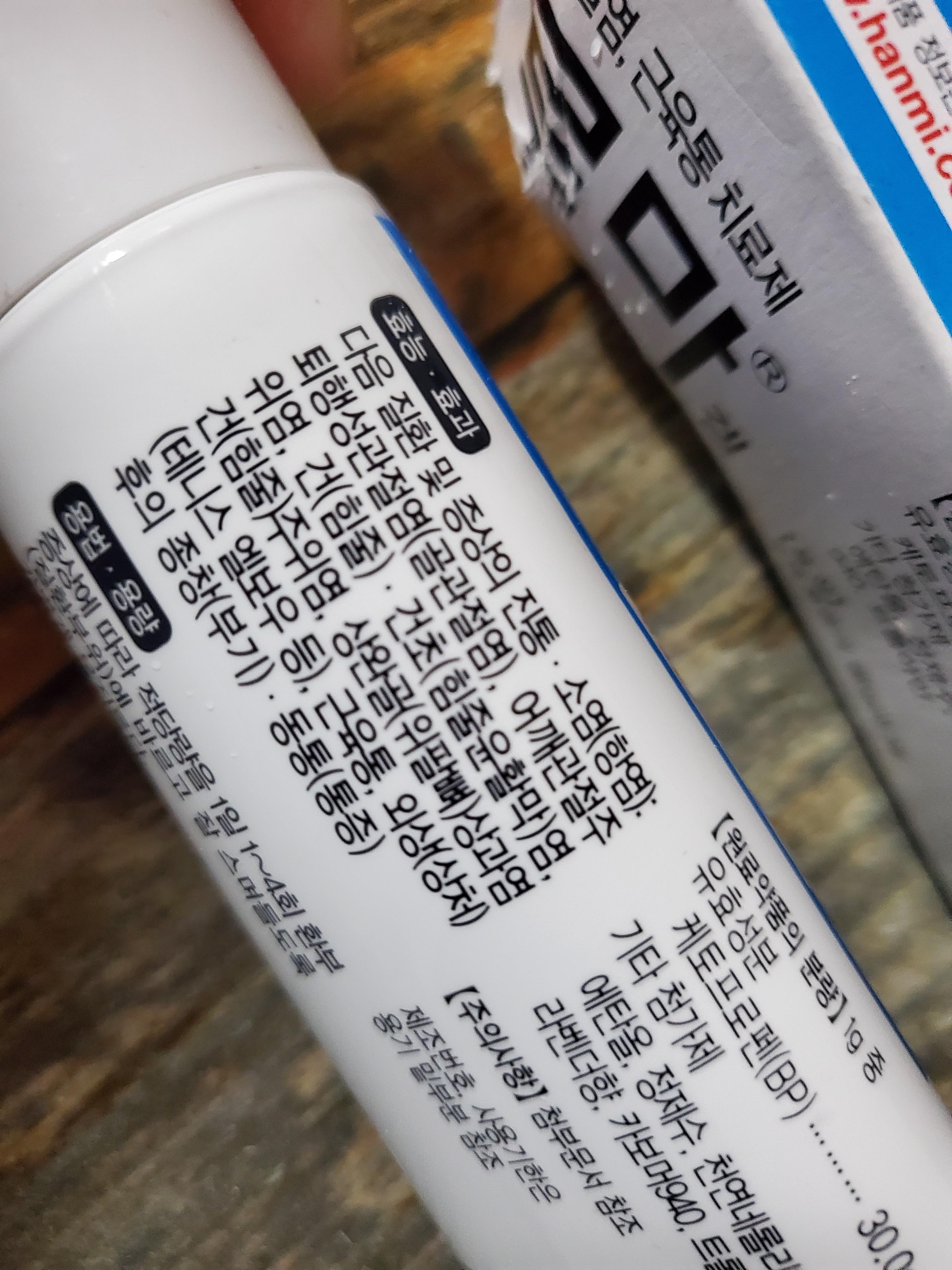 눈 및 점막에는 사용하지 않으며, 손상된 피부 및 점막, 습진 또는 발진 부위에 사용하는 경우 일시적인 자극 및 저린감을 일으킬 수 있으므로 사용 시 주의한다. 무좀, 백선 등에는 사용하지 않는다. 한미약품(주)에서 제조, 판매한다.