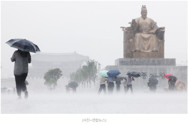 세종대왕 동상과 우산쓰는 시민들의 모습이... 비오는날 ... 멋스럽게 보인다