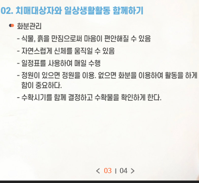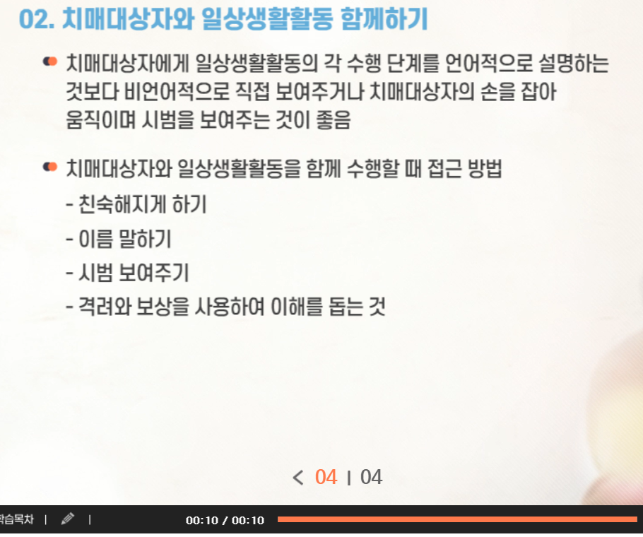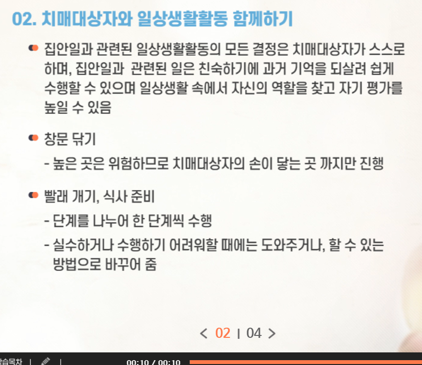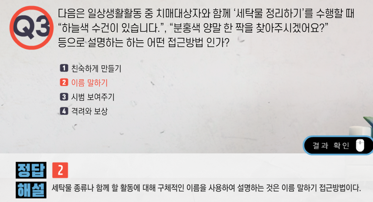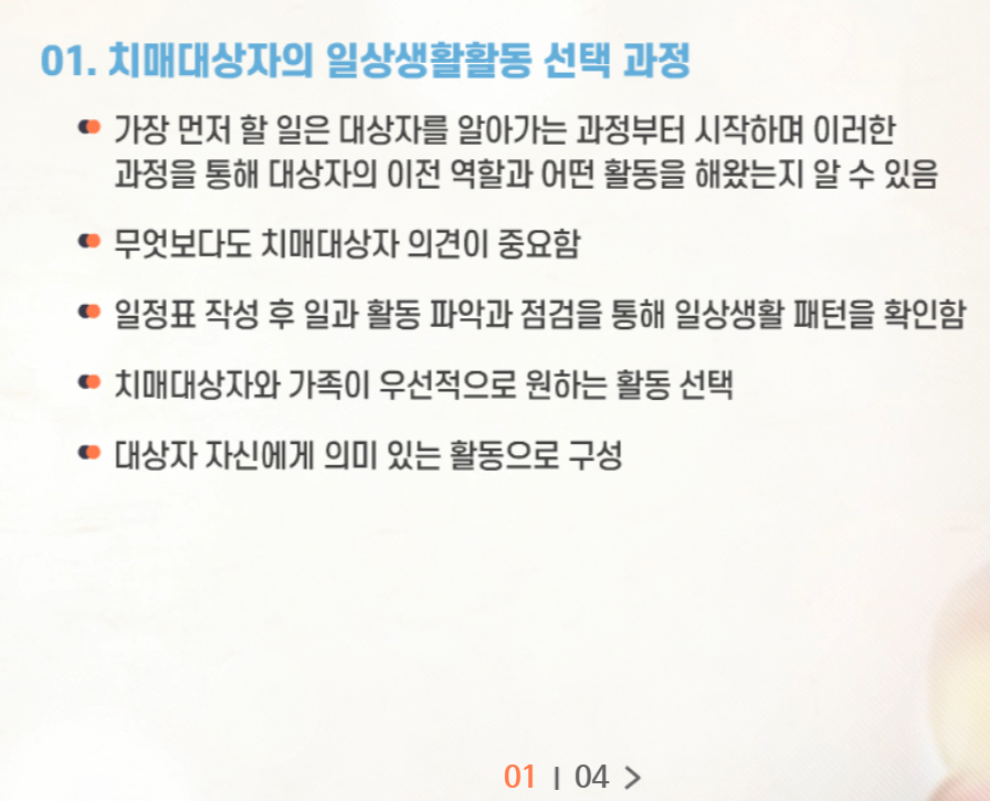 | 치매전문교육 시험문제 [인지자극 활도의 실제1 ] (1) | 2022.09.03 |
