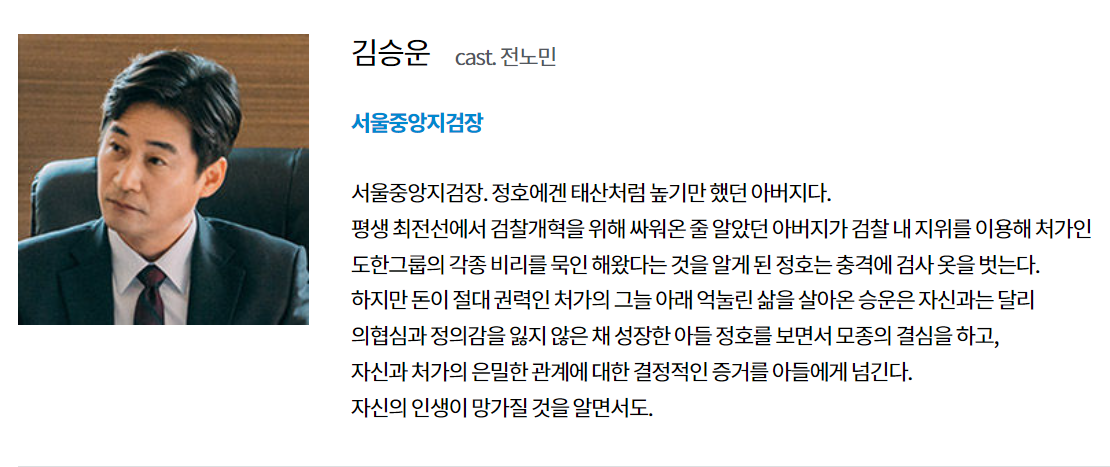 어린 시절부터 대쪽같은 원칙주의자였던 검사 아버지 밑에서 성장해 자연히