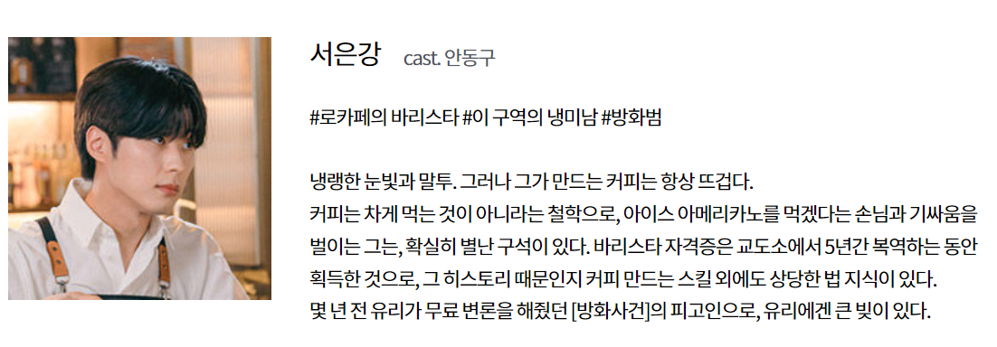 이렇게 보면 팔자 좋은 동네 백수가 따로 없어 보이지만, 사실 그는 한국대 법대 수석 입학 + 재학 중 사시 패스 + 사법연수원 수석 수료생에 빛나는...
