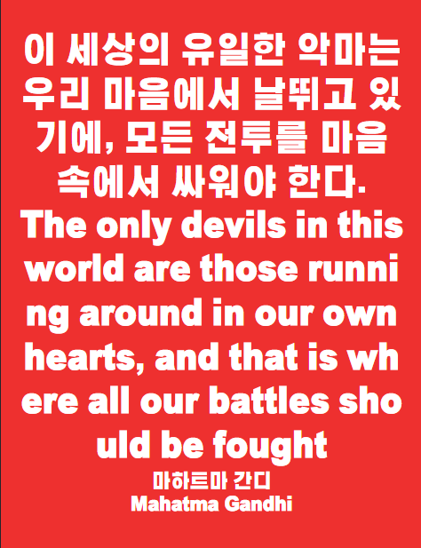 이 세상의 유일한 악마는 우리 마음에서 날뛰고 있기에, 모든 전투를 마음 속에서 싸워야 한다.