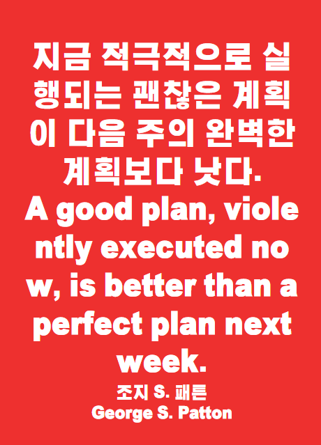 지금 적극적으로 실행되는 괜찮은 계획이 다음 주의 완벽한 계획보다 낫다.