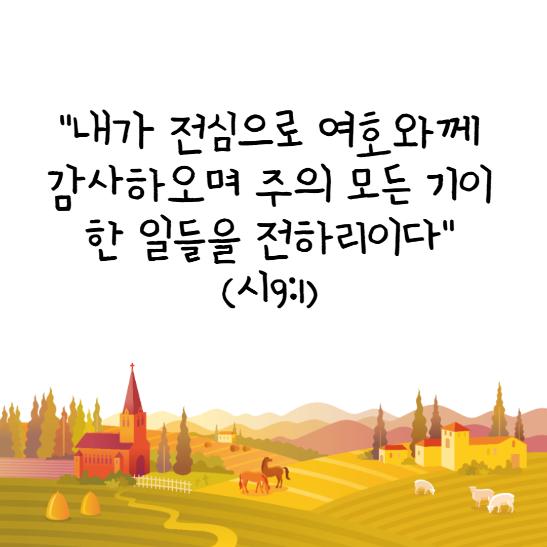 "내가 전심으로 여호와께 감사하오며 주의 모든 기이한 일들을 전하리이다"(시9:1)