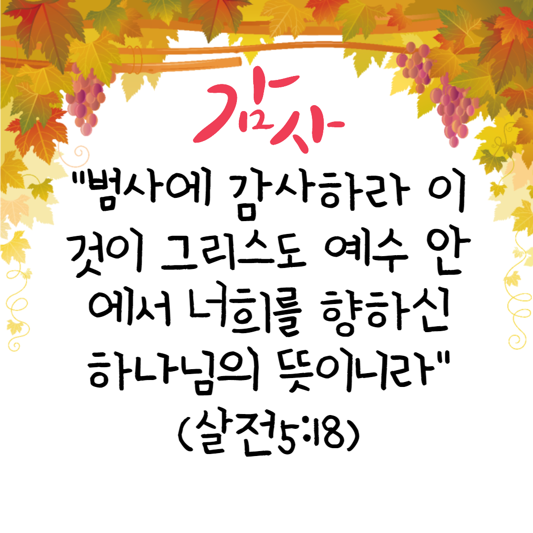 "범사에 감사하라 이것이 그리스도 예수 안에서 너희를 향하신 하나님의 뜻이니라"(살전5:18)