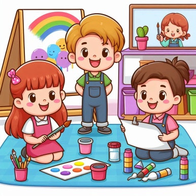 “이번 주는 미술주간입니다! 아이들과 다양한 재료로 자유롭게 표현하는 시간을 가질 예정이에요. 집에서도 색칠하기나 만들기 놀이를 함께 해보시면 아이의 창의력이 더욱 자라날 거예요. 오늘은 손가락 물감 놀이를 하며 감각을 키웠답니다.”