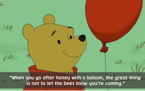 "만약 너가 풍선과 함께 꿀을 얻으려고 한다면, 가장 좋은 방법은 벌들이 너가 다가오는걸 모르게 하는거야.
