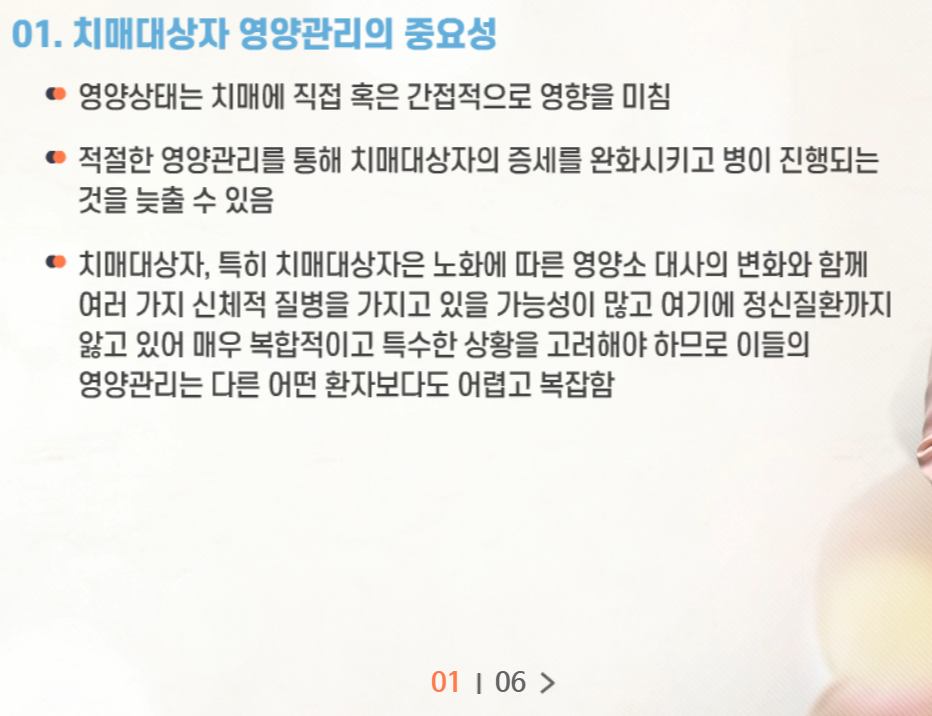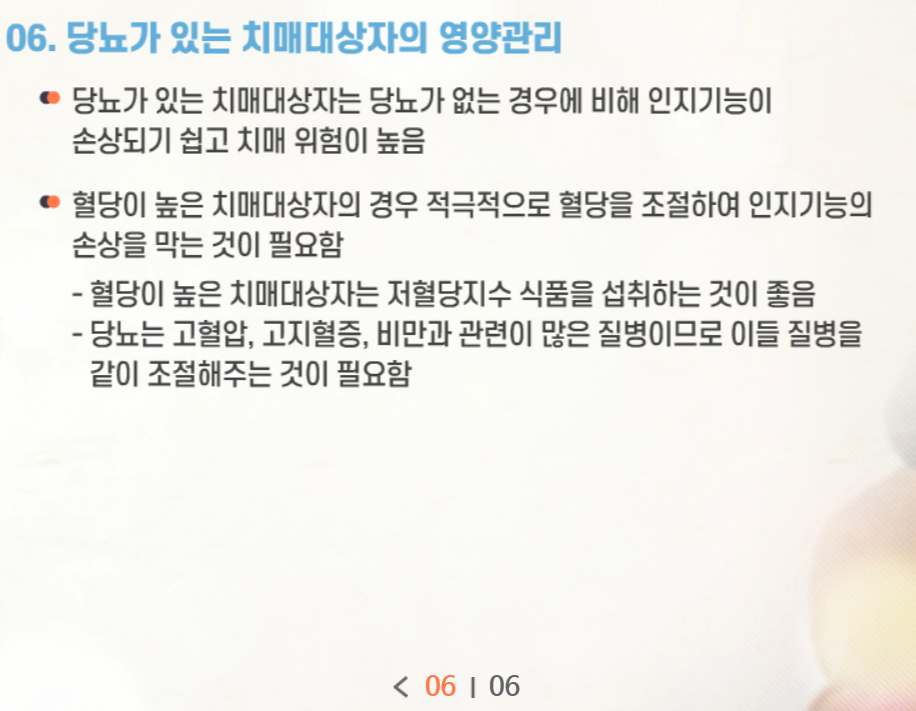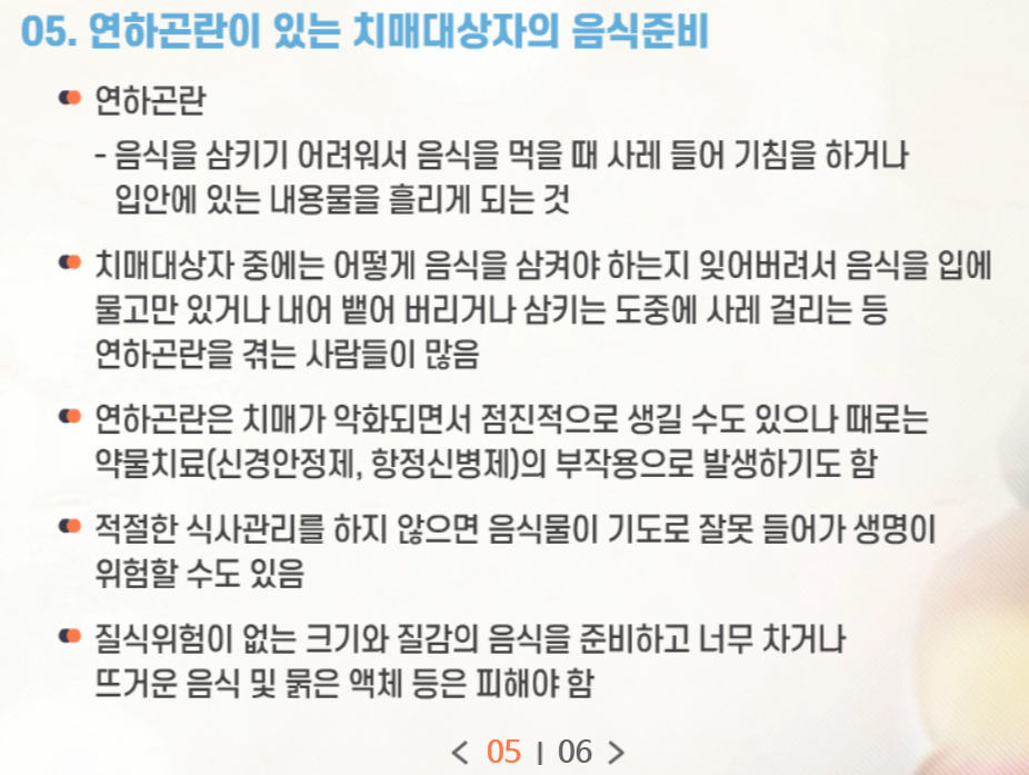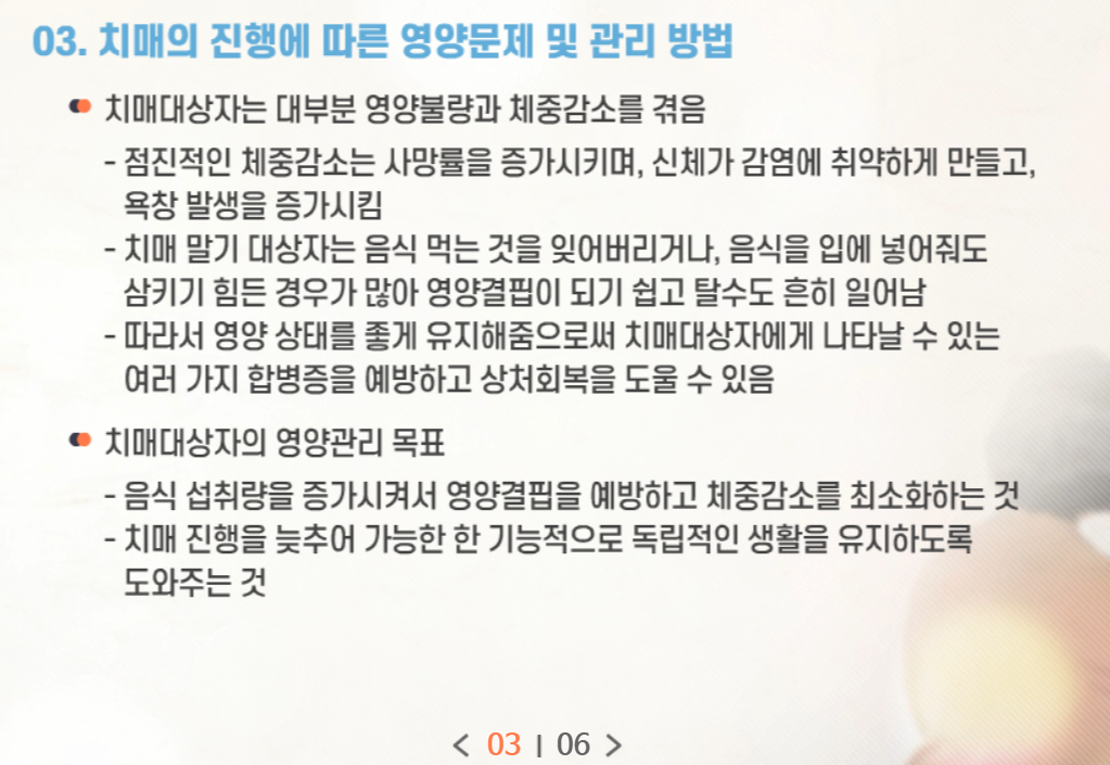 치매전문교육 시험문제 [영양관리]